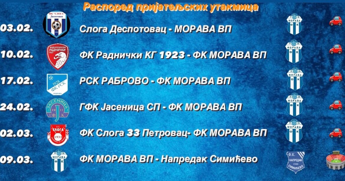 Start priprema zakazan je za 27. januar. Objavljen i raspored pripremnih mečeva Morave: