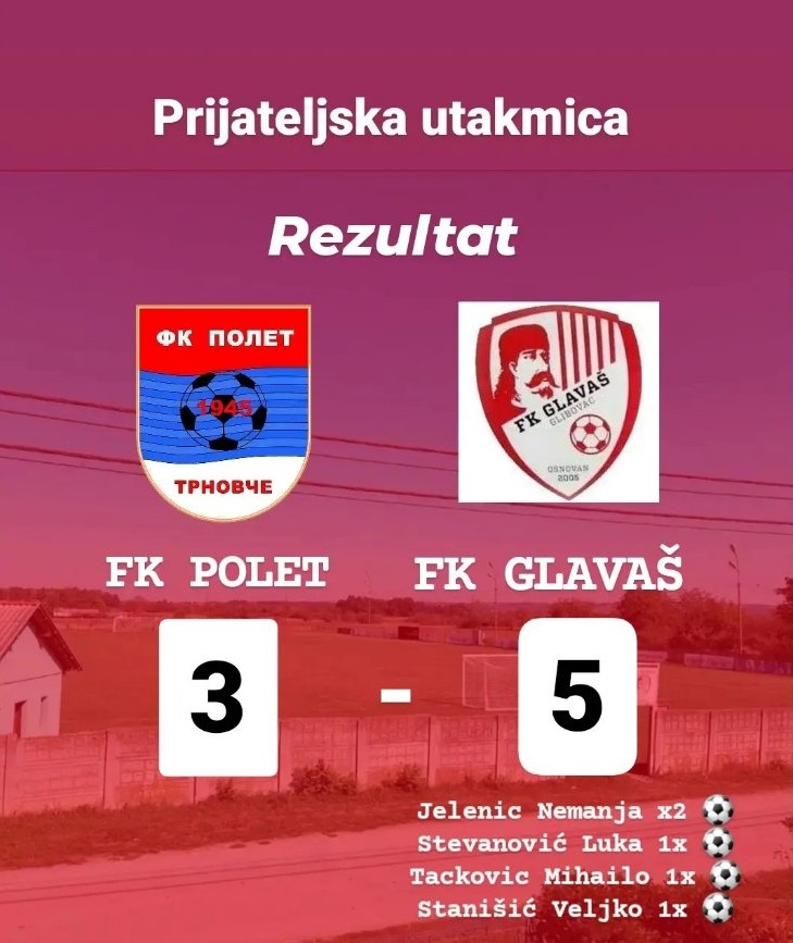 Glibovčani su pobedili domaći sastav Poleta, člana Opštinske lige Velika Plana i doskorašnjeg okružnog ligaša, rezultatom 5:3.