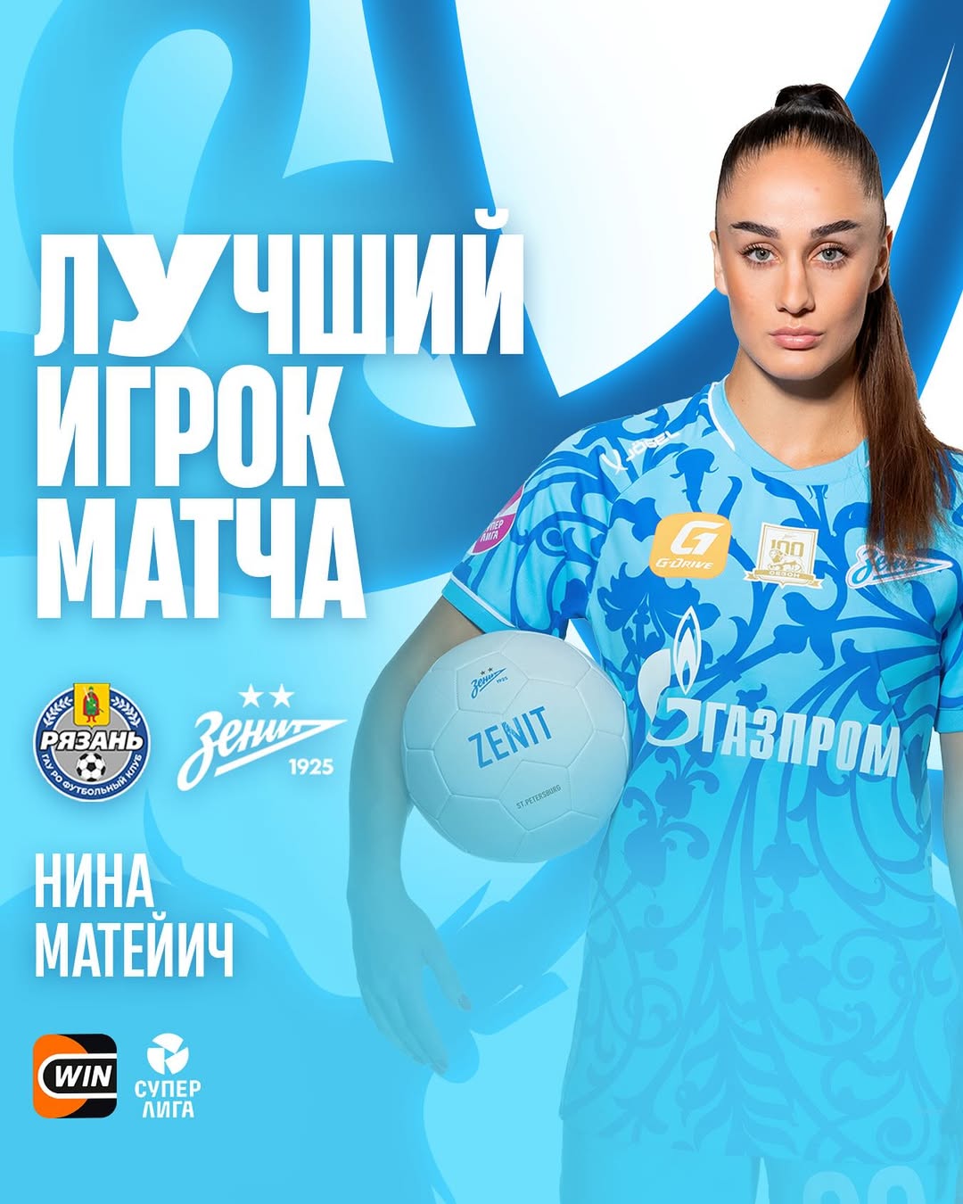 Posle dva gola Rubinu, devojka iz Velike Plane je postigla tri gola i het-trik u trijumfu Zenita (0:4) na gostovanju u Rjazanju.