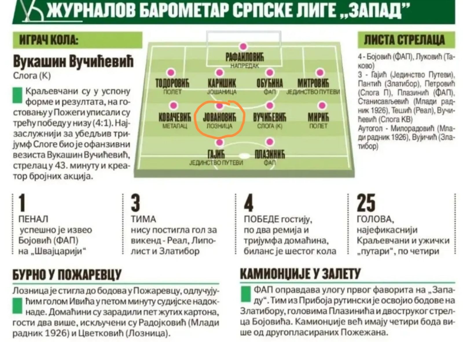 Sasvim je logičan bio i izbor iskusnog vezng igrača u najbolji tim kola Srpske lige-Zapad, u redovnoj rubrici dnevnog sportskog lista „Sportski žurnal“.
