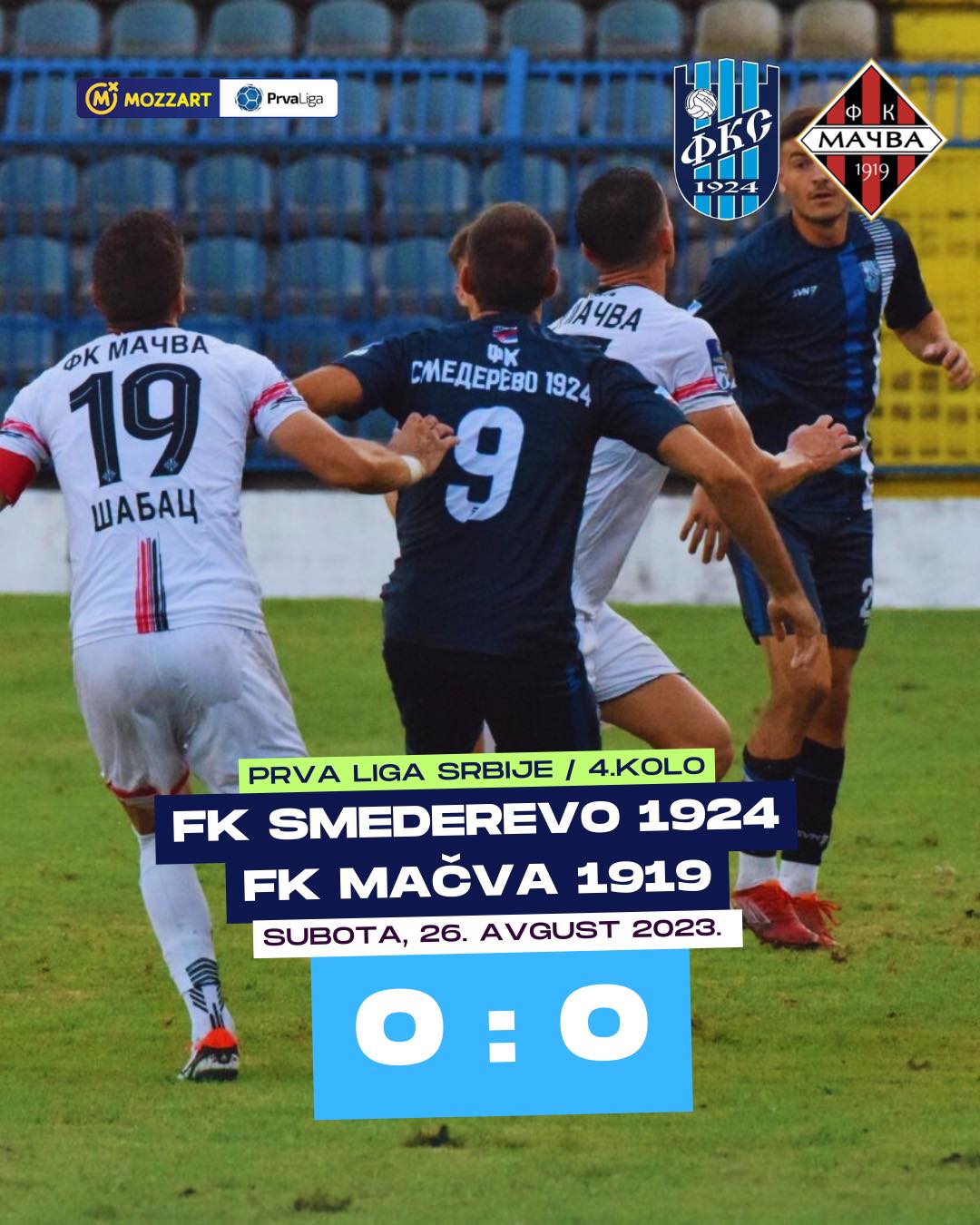 Jedan od derbija 4. kola Prve lige Srbije odigran je u Smederevu, gde su se sastali domaći fudbaleri Smedereva i šabačke Mačve, ekipa iz vrha tabele.