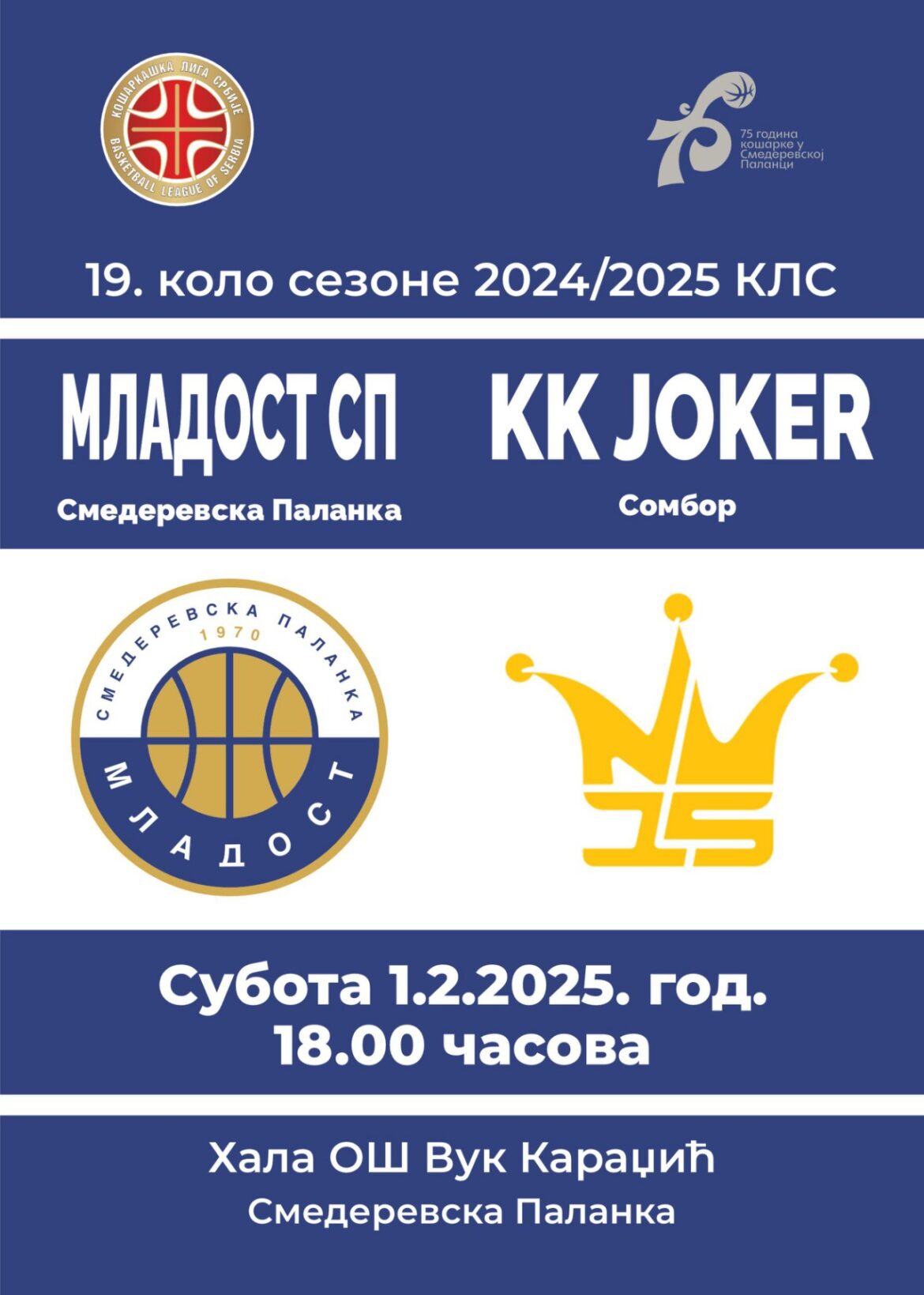 KošarkaNajnovije GAME DAY: MLADOST SP- JOKER (SUBOTA, 18) od Bojan Zivkovic 01/02/2025 Napisao/la Bojan Zivkovic 01/02/2025 157 0 Komentari 0 FacebookTwitterPinterestEmail Bojan Zivkovic Prethodna vest POJAČANJE BUKOVCA IZ KOMŠILUKA: MILOŠ JEVTIĆ IZ SEPACA U MRAMORAC! Naredna vest PROGLAŠENI NAJBOLJI SPORTISTI VELIKE PLANE ZA 2024.GODINU! Povezane vesti IZUZETNI REZULTATI STRELACA JASENICE U KUPU SRBIJE U... 19/04/2026 TRENER KOŠARKAŠA MLADOSTI SP MARKO KOVAČEVIĆ O POBEDI... 19/04/2026 VELIKI USPEH DŽUDISTA KOBRE NA PRVENSTVU SRBIJE: ZLATO... 18/04/2026 POBEDA KOŠARKAŠA MLADOSTI SP ZA KRAJ SEZONE I... 18/04/2026 JASENIČKA LIGA: SELEVČANI U CEROVCU, AZANJCI U BANIČINI 17/04/2026 ZONA DUNAV: FUDBALERI JASENICE GOSTUJU U TOPOLI! 17/04/2026 PODUNAVSKA OKRUŽNA LIGA: GLAVAŠ U KUSATKU, RADNIK U... 17/04/2026 KOŠARKAŠ MLADOSTI SP NIKOLA STEFANOVIĆ UOČI UTAKMICE SA... 17/04/2026 PETRA RAJKOVIĆ PRVAKINJA SRBIJE U ŠAHU: NASLEDNICA DEDE... 16/04/2026 KOŠARKAŠ MLADOSTI SP MINJA TODOROVIĆ O UTAKMICI PROTIV... 16/04/2026