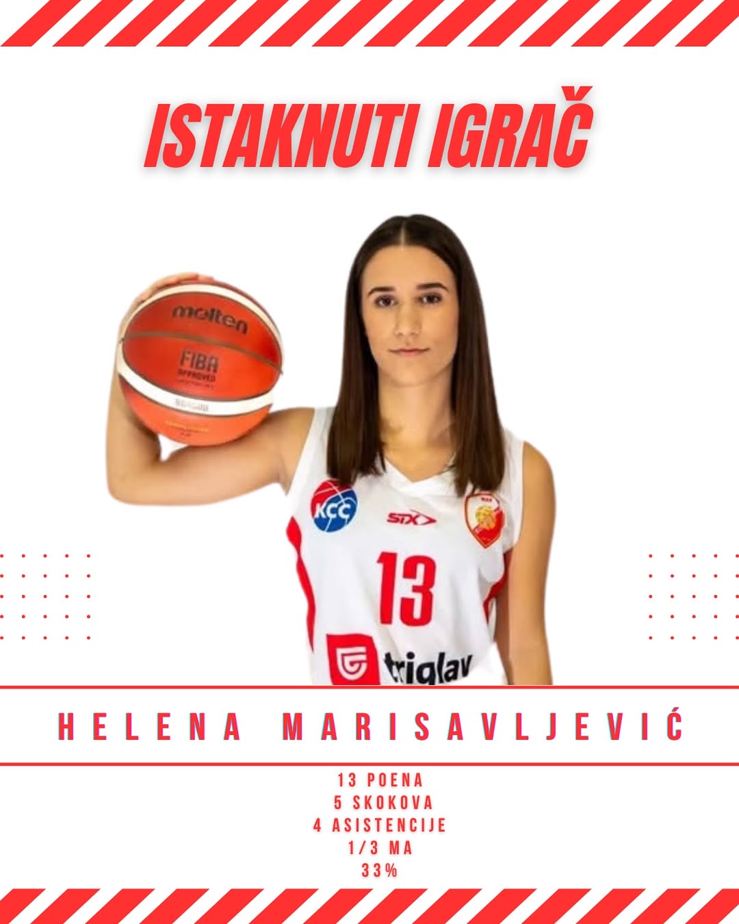 Helena je bila igračica utakmice i zaslužila je MVP priznanje za svoj učinak. Postigla je 13 poena (6/3 šut za tri), uz 6 skokova, 4 asistencije i čak 5 osvojenih lopti.