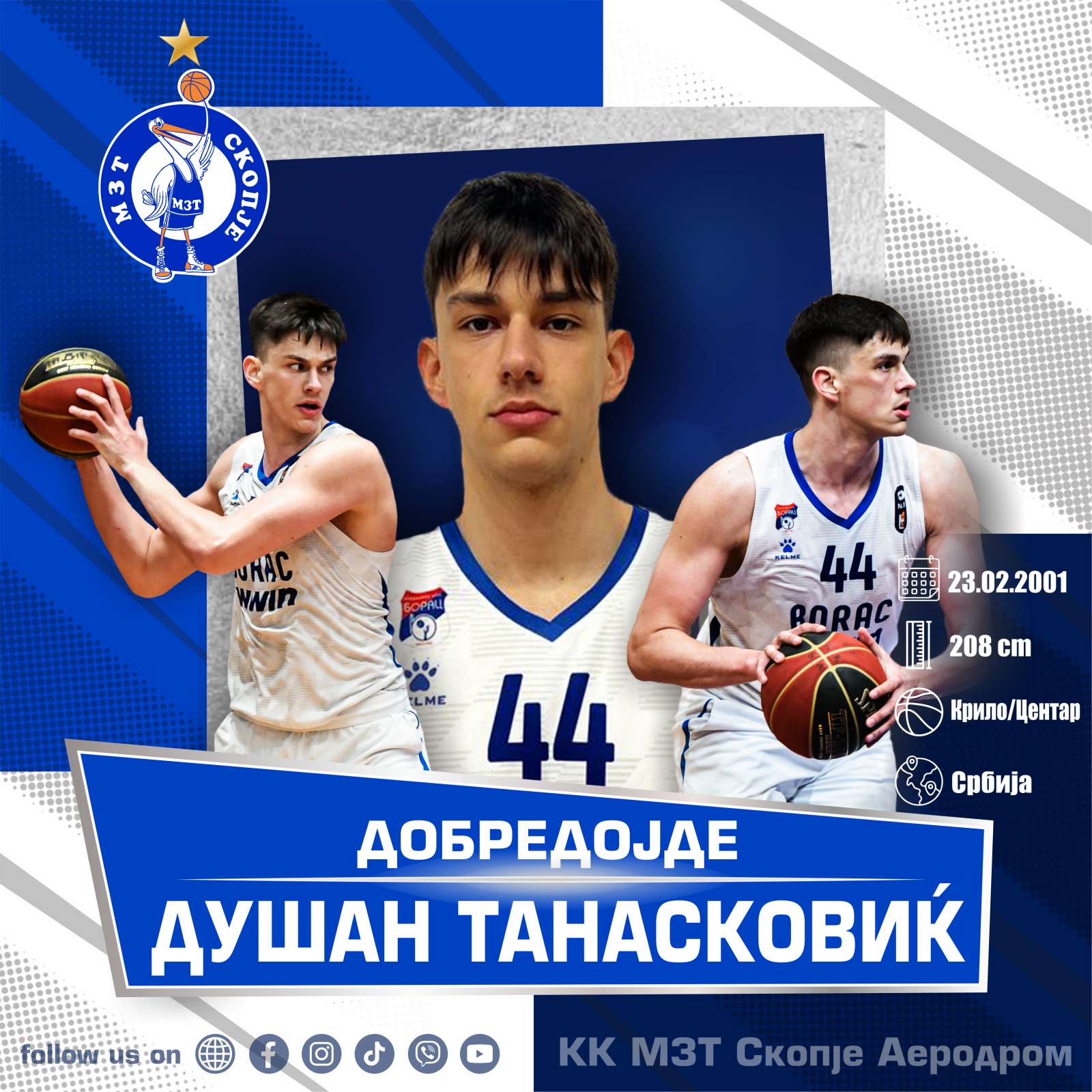 Posle odlične sezone u Borcu iz Banjaluke, mladi i već afirmisani košarkaš iz Smederevske Palanke, Dušan Tanasković (22,208 cm) karijeru nastavlja u Makedoniji.
