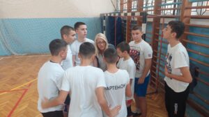 U sali OŠ HRŠ mečevi su bili veoma uzbudljivi, a učestvovale su ekipe iz četiri osnovne i tri srednje škole.