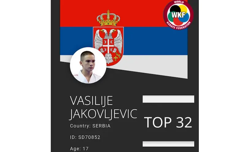 Naime, na najnovijoj svetskoj rang listi Vasilije Jakovljević (17) je među 32 najbolja juniora na planeti u katama.